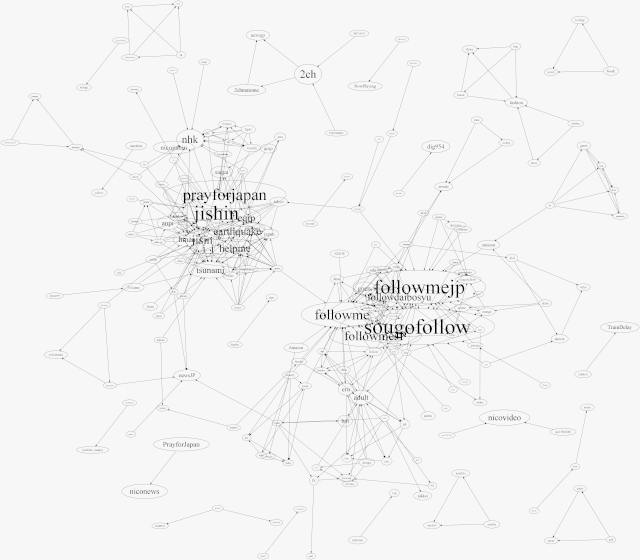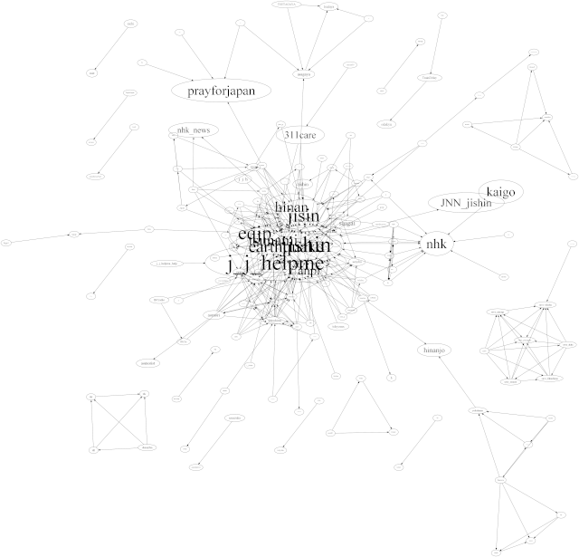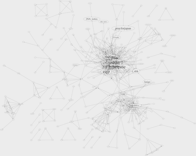 03-11 09 10 11 12 13 14 15 16 17 18 19 20 21 22 23 03-12 00 01 02 03 04 05 06 07 08 09 10 11 12 13 14 15 16 17 18 19 20 21 22 23 03-13 00 01 02 03 04 05 06 07 08 09 10 11 12 13 14 15 16 17 18 19 20 21 22 23 03-14 00 01 02 03 04 05 06 07 08 09 10 11 12 13 14 15 16 17 18 19 20 21 22 23 03-15 00 01 02 03 04 05 06 07 08 09 10 11 12 13 14 15 16 17 18 19 20 21 22 23 03-16 00 01 02 03 04 05 06 07 08 09 10 11 12 13 14 15 16 17 18 19 20 21 22 23 03-17 00 01 02 03 04 05 06 07 08 09 10 11 12 13 14 15 16 17 18 19 20 21 22 23 03-18 00 01 02 03 04 05 06 07 08 | Top > Project 311 > 2011-03-12_002011-03-12_00のハッシュタグの共起ネットワーク*各画像は縮小後の物で、元のサイズの画像にリンクされています。全体UCINET用ネットワークファイルGraphviz用ネットワークファイル ![]() リツイートなしUCINET用ネットワークファイルGraphviz用ネットワークファイル ![]() リツイートのみUCINET用ネットワークファイルGraphviz用ネットワークファイル ![]() |