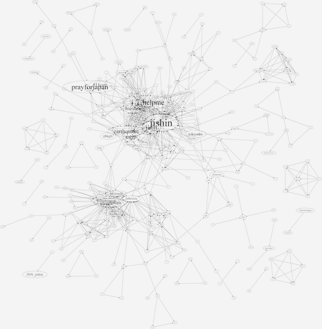 03-11 09 10 11 12 13 14 15 16 17 18 19 20 21 22 23 03-12 00 01 02 03 04 05 06 07 08 09 10 11 12 13 14 15 16 17 18 19 20 21 22 23 03-13 00 01 02 03 04 05 06 07 08 09 10 11 12 13 14 15 16 17 18 19 20 21 22 23 03-14 00 01 02 03 04 05 06 07 08 09 10 11 12 13 14 15 16 17 18 19 20 21 22 23 03-15 00 01 02 03 04 05 06 07 08 09 10 11 12 13 14 15 16 17 18 19 20 21 22 23 03-16 00 01 02 03 04 05 06 07 08 09 10 11 12 13 14 15 16 17 18 19 20 21 22 23 03-17 00 01 02 03 04 05 06 07 08 09 10 11 12 13 14 15 16 17 18 19 20 21 22 23 03-18 00 01 02 03 04 05 06 07 08 | Top > Project 311 > 2011-03-12_012011-03-12_01のハッシュタグの共起ネットワーク*各画像は縮小後の物で、元のサイズの画像にリンクされています。全体UCINET用ネットワークファイルGraphviz用ネットワークファイル ![]() リツイートなしUCINET用ネットワークファイルGraphviz用ネットワークファイル ![]() リツイートのみUCINET用ネットワークファイルGraphviz用ネットワークファイル ![]() |