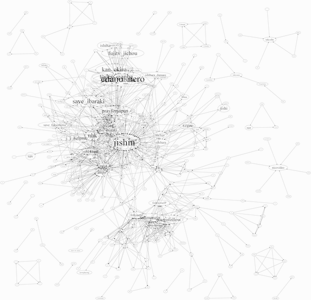 03-11 09 10 11 12 13 14 15 16 17 18 19 20 21 22 23 03-12 00 01 02 03 04 05 06 07 08 09 10 11 12 13 14 15 16 17 18 19 20 21 22 23 03-13 00 01 02 03 04 05 06 07 08 09 10 11 12 13 14 15 16 17 18 19 20 21 22 23 03-14 00 01 02 03 04 05 06 07 08 09 10 11 12 13 14 15 16 17 18 19 20 21 22 23 03-15 00 01 02 03 04 05 06 07 08 09 10 11 12 13 14 15 16 17 18 19 20 21 22 23 03-16 00 01 02 03 04 05 06 07 08 09 10 11 12 13 14 15 16 17 18 19 20 21 22 23 03-17 00 01 02 03 04 05 06 07 08 09 10 11 12 13 14 15 16 17 18 19 20 21 22 23 03-18 00 01 02 03 04 05 06 07 08 | Top > Project 311 > 2011-03-14_192011-03-14_19のハッシュタグの共起ネットワーク*各画像は縮小後の物で、元のサイズの画像にリンクされています。全体UCINET用ネットワークファイルGraphviz用ネットワークファイル ![]() リツイートなしUCINET用ネットワークファイルGraphviz用ネットワークファイル ![]() リツイートのみUCINET用ネットワークファイルGraphviz用ネットワークファイル ![]() |